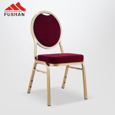 Wholesale Classic High Quality Stackable Hotel Banquet Wedding Chair With Cushions Red Fabric Luxury Gold Aluminum Dining Chairs