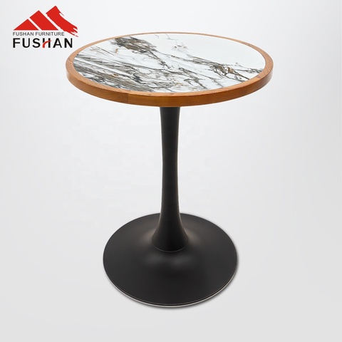 Modern Commercial Restaurant Furniture Solid Wood Frame Rock Plate Dining Table Coffee Shop Fast Food Round Table Metal Leg